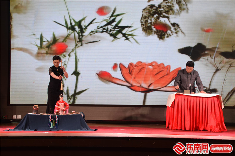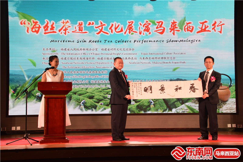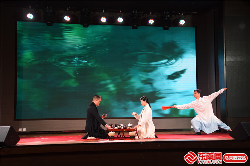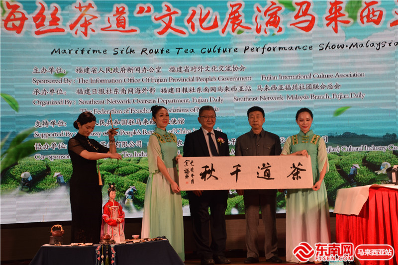 活動(dòng)現(xiàn)場(chǎng)。 中國駐馬來西亞大使館文化參贊張振,馬來西亞福州社團(tuán)聯(lián)合總會(huì)會(huì)長、福建日?qǐng)?bào)社東南網(wǎng)馬來西亞站站長拿督斯里劉為強(qiáng)太平局紳,馬來西亞福建社團(tuán)聯(lián)合會(huì)總署理會(huì)長陳康益,馬來西亞福建總商會(huì)總會(huì)長丹斯里拿督邱財(cái)加,馬來西亞福州社團(tuán)聯(lián)合總會(huì)永久名譽(yù)顧問拿督斯里李祈龍,馬來西亞姑蘇廚業(yè)茶酒樓聯(lián)合總會(huì)總會(huì)長黃守群,吉隆坡中餐廚業(yè)友好會(huì)會(huì)長葉育華,以及20多家馬來西亞社團(tuán)組織代表和當(dāng)?shù)夭铇I(yè)界、商界、學(xué)界、媒體代表和當(dāng)?shù)赜讶说?00多人參加活動(dòng)。 “海絲茶道”文化展演代表團(tuán)一行有:代表團(tuán)團(tuán)長、福建省對(duì)外文化交流協(xié)會(huì)副會(huì)長呂宏波,副團(tuán)長、福建省對(duì)外文化交流協(xié)會(huì)副秘書長陸傳芝,福建省書法家協(xié)會(huì)副主席、秘書長余端照,福建日?qǐng)?bào)社東南網(wǎng)海外部主任王艷玲,以及來自福建省廣播影視集團(tuán)、福建省歌舞劇院、三明市客家文化藝術(shù)中心(三明市歌舞團(tuán))、福建省福安市民族茶文化藝術(shù)團(tuán)、福建龍巖上杭縣客家木偶藝術(shù)傳習(xí)中心等單位優(yōu)秀演員和福建省茶企代表。