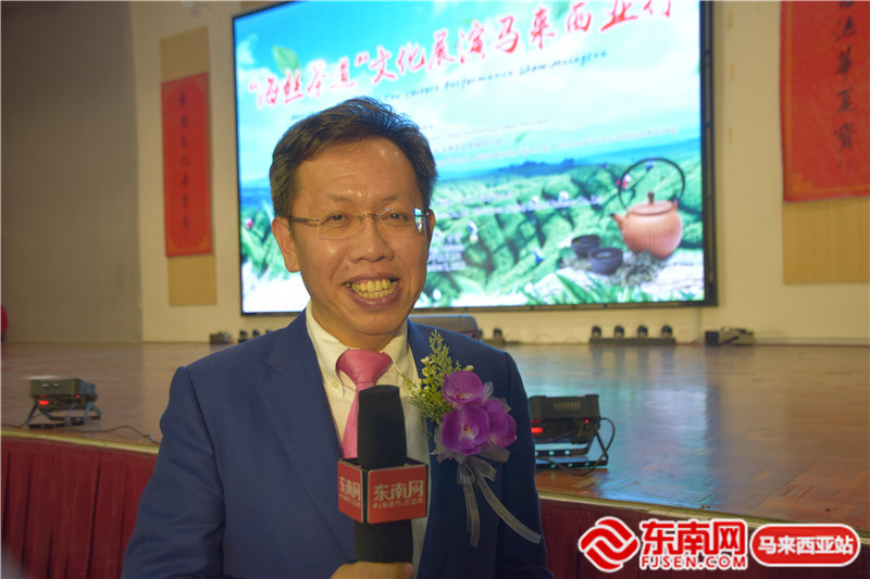 “海絲茶道”文化展演古晉籌委會主席、古晉巴達旺福州公會主席甲必丹拿督劉思樂接受東南網采訪。