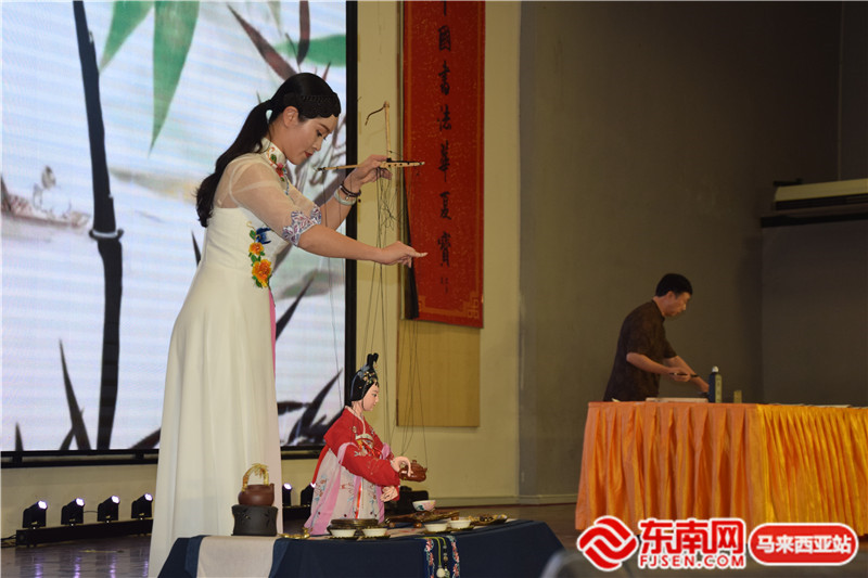 現場表演《木偶茶藝》,由木偶小姐向嘉賓奉茶。