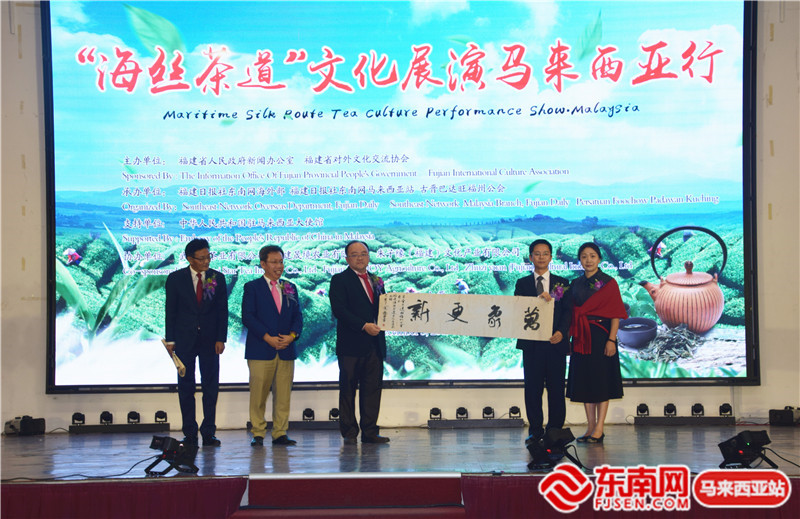 現場合影。 東南網馬來西亞12月4日訊(本網記者 夏芳 王艷玲 文/圖)12月3日,由福建省人民政府新聞辦公室、福建省對外文化交流協會主辦,福建日報社東南網海外部、馬來西亞站和古晉巴達旺福州公會承辦的“海絲茶道”文化展演活動在馬來西亞古晉成功舉辦。