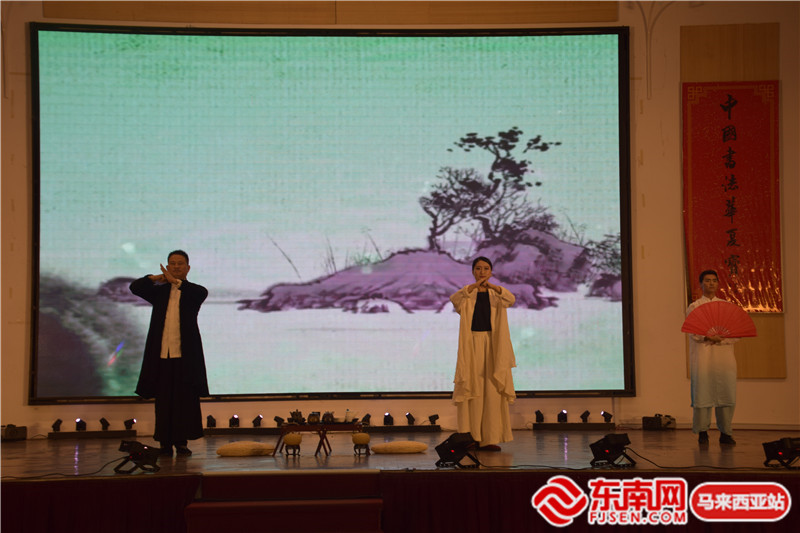 中國駐古晉總領事程廣中講話。 程廣中代表中國駐古晉總領事館,對“海絲茶道”文化展演代表團的到來表示歡迎。他表示,海上絲綢之路與茶道是中國與世界和平交往、互通有無的重要象征,都是中華文明對人類文明作出的重要貢獻。福建省在海上絲綢之路和茶道中都占有十分重要的地位。目前,福建正利用其優越的地理、歷史和人文優勢,加快開放性經濟建設,深化與東盟國家交流合作,加快21世紀海上絲綢之路核心區建設。在茶道方面,福建是中國著名茶鄉,砂拉越是馬來西亞重要的州,位于21世紀海上絲綢之路重要節點。砂拉越華人與福建有著血緣、地緣、文緣上的天然聯系、天然親近感,在砂拉越傳播、弘揚“海絲茶道”是最好的選擇。他希望大家通過觀看演出,能夠更深入了解海上絲綢之路,更加喜歡中國茶道。