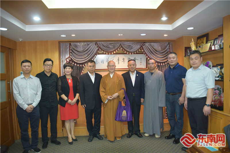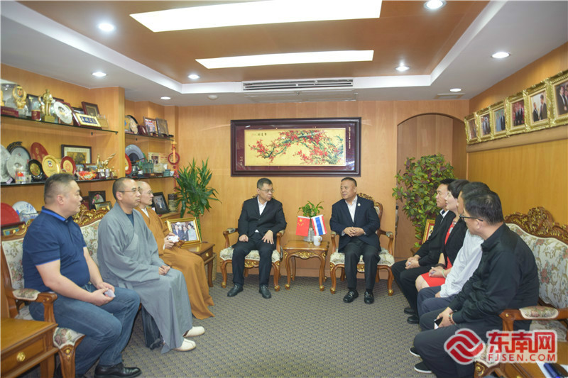 賓主合影,互贈紀念品。馬興海 攝 東南網泰國12月22日訊(本網記者 夏芳 文/圖)22日,以福建省政協常委、福建佛學院院長、福州開元寺方丈、中華禪倡導者與導師本性禪師為特邀顧問,福建省對外文化交流協會副會長鄭東育為團長的“中華禪文化泰國行”福建交流團(下簡稱“交流團”)一行9人在曼谷拜訪泰國華人青年商會,受到該會會長李桂雄的熱情接待。