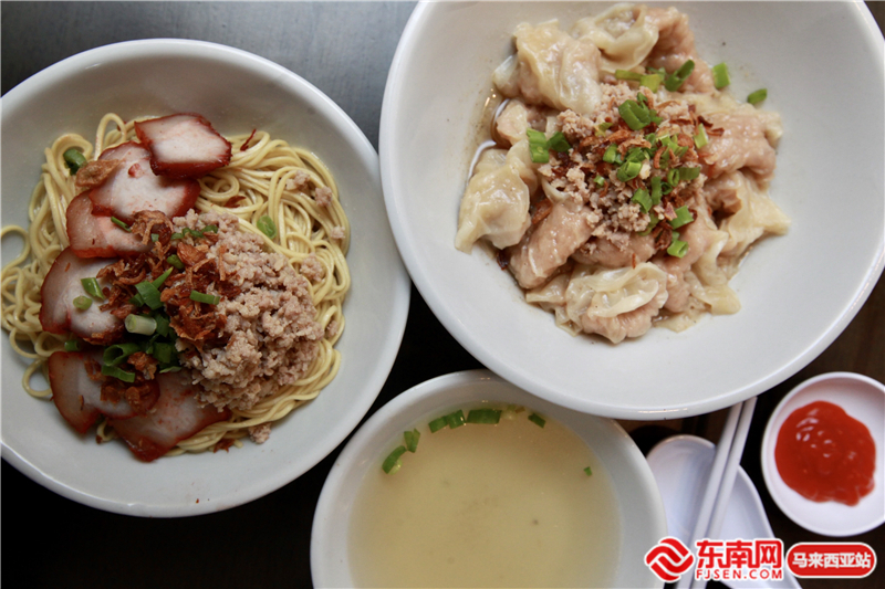 馬來西亞砂拉越福州美食干盤面和扁肉。