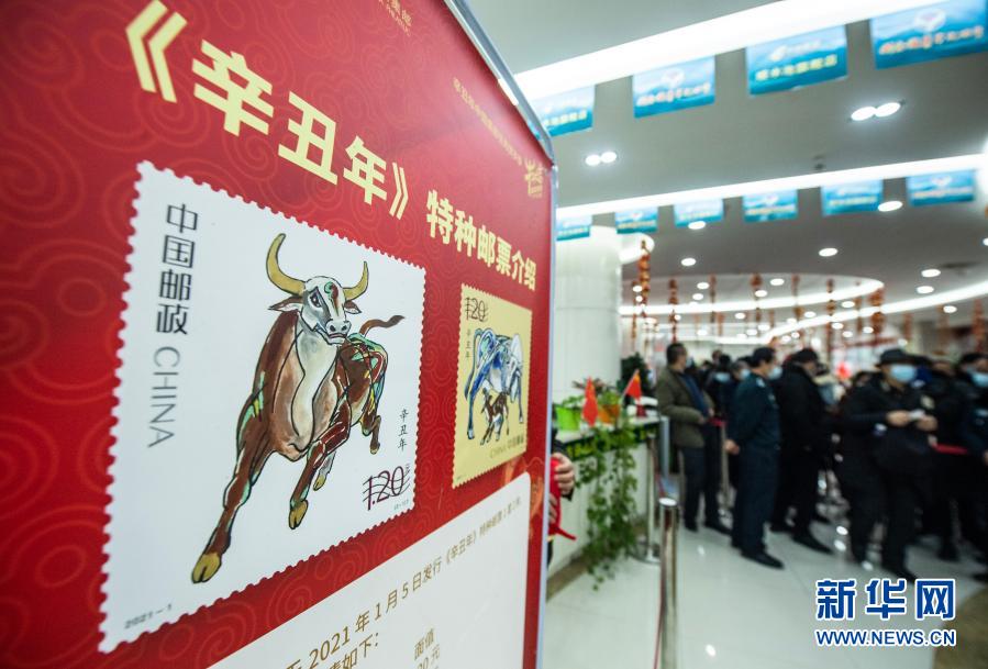 1月5日,購買《辛丑年》特種郵票的貴陽市民排隊進入銷售大廳。