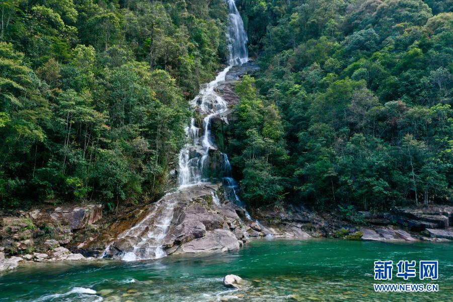 這是2020年4月1日拍攝的武夷山國家公園內的瀑布清溪(無人機照片)。新華社記者 姜克紅 攝