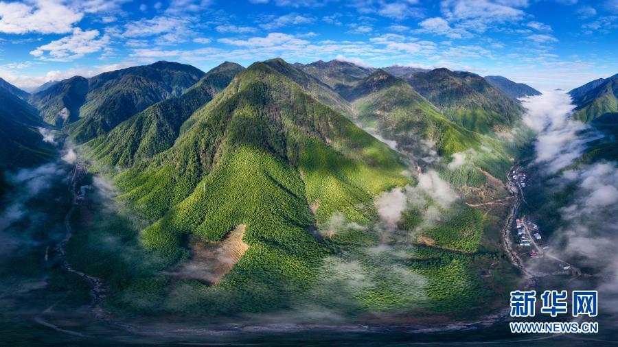 2020年12月1日,武夷斷裂帶峽谷內云霧繚繞,村莊若隱若現(無人機照片)。新華社記者 姜克紅 攝
