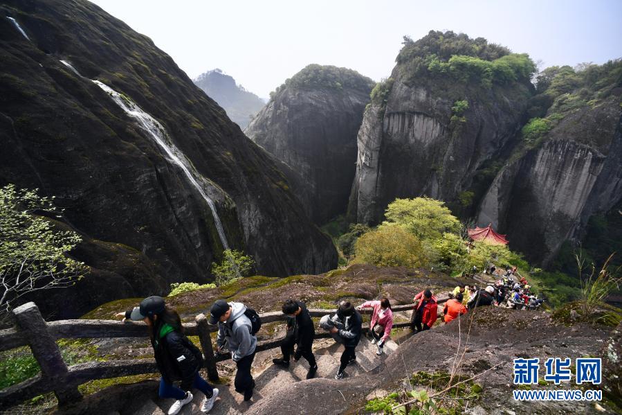 3月22日,游客在武夷山國家公園天游峰景區登山賞景。新華社記者 姜克紅 攝