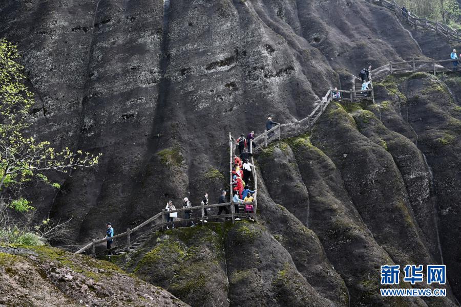 3月22日,游客在武夷山國(guó)家公園天游峰景區(qū)登山賞景。新華社記者 姜克紅 攝