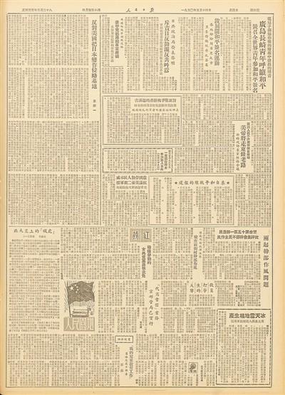 1950年5月14日出版的人民日報第四版。 資料圖片