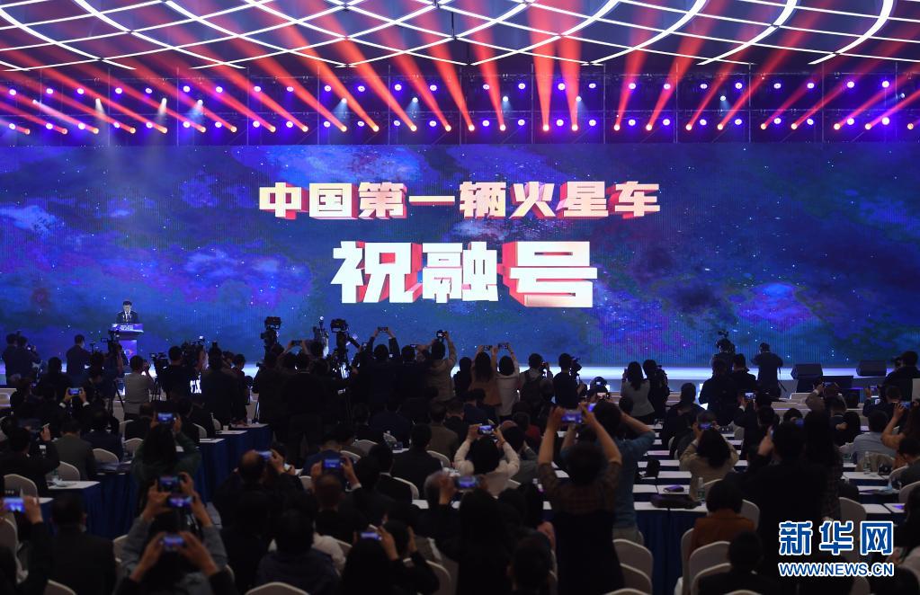 4月24日上午,在江蘇南京舉行的2021年中國航天日啟動暨中國航天大會開幕儀式上,國家航天局正式公布我國首輛火星車命名為“祝融”,全稱“祝融號”。新華社記者 季春鵬 攝 根據(jù)國家航天局發(fā)布的消息,祝融英文名稱采用直接音譯方式確定為:“Zhu Rong”。 首次火星探測任務(wù)是我國行星際探測的首趟征途,計(jì)劃一次實(shí)現(xiàn)對火星的“環(huán)繞、著陸、巡視”,在國際航天界亦屬創(chuàng)舉。將首輛火星車命名為祝融號,寓意點(diǎn)燃我國行星際探測的火種,指引人類對浩瀚星空、宇宙未知的接續(xù)探索和自我超越。