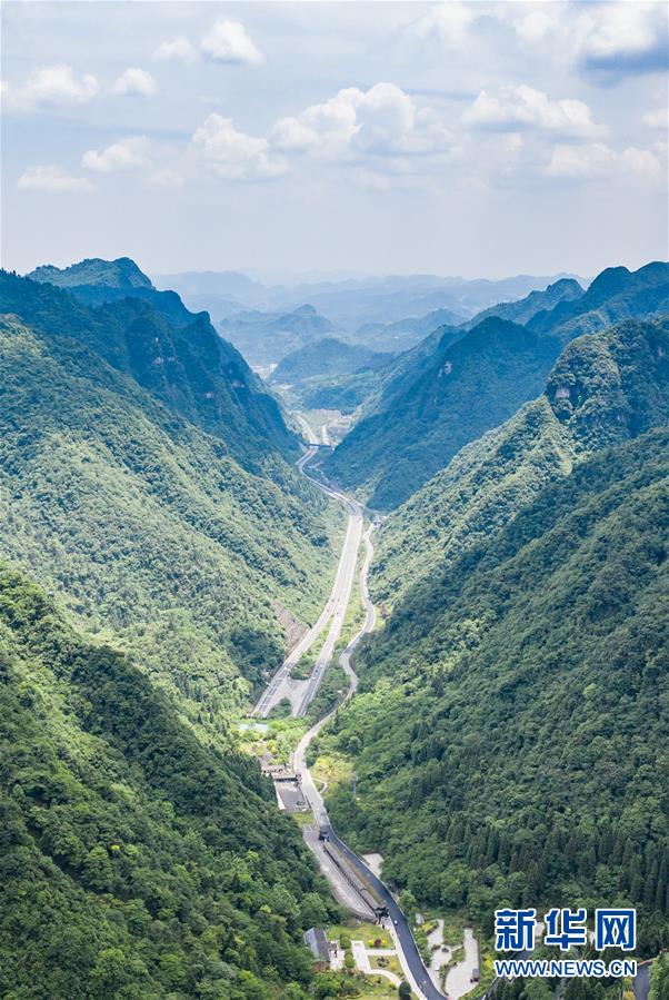 貴州遵義市匯川區婁山關景區旁的蘭海高速和滿防公路(右側)(2020年6月5日攝,無人機照片)。 新華社記者 陶亮 攝 |