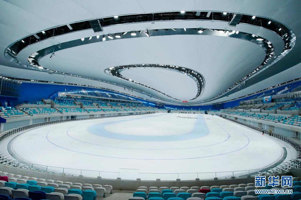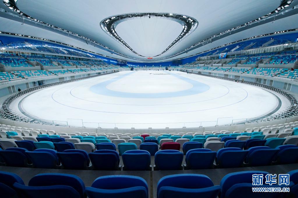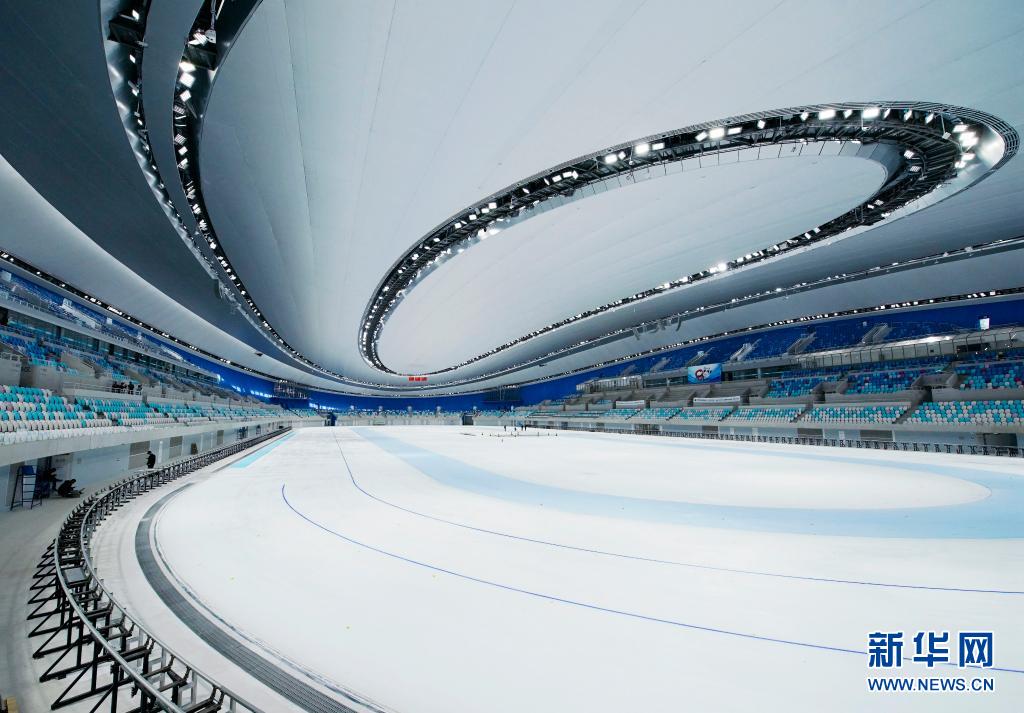 這是5月8日拍攝的國家速滑館冰面。近日,北京冬奧會標志性場館國家速滑館“冰絲帶”開展首次全冰面制冰,規(guī)模約1.2萬平方米的場館全冰面成功亮相。 新華社記者 張晨霖 攝 新華社北京5月10日電(記者張驍、夏子麟)記者10日獲悉,北京冬奧會標志性場館國家速滑館“冰絲帶”日前開展首次全冰面制冰,規(guī)模約1.2萬平方米的場館全冰面成功亮相。 國家速滑館規(guī)劃發(fā)展部副經(jīng)理馮剛介紹,場館全冰面由速度滑冰賽道、訓練道、多功能場芯區(qū)三部分組成。全冰面下方建有分模塊控制的制冰單元,可根據(jù)運動項目分區(qū)域、分標準制冰。 全冰面設計兼顧冬奧賽事舉辦和場館賽后運營需要。國家速滑館在北京冬奧會賽時承擔速度滑冰項目比賽和訓練任務,賽后將變身集體育賽事、群眾健身、文化休閑、展覽展示、社會公益五大功能于一體的綜合性體育場館。