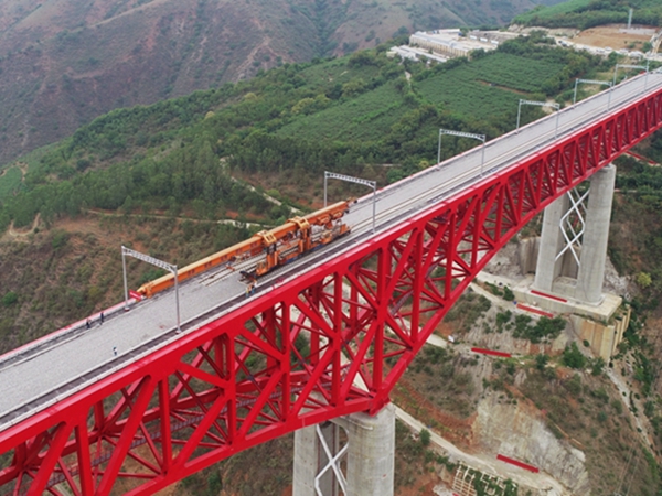 (鋪軌機在中老鐵路元江雙線特大橋施工。中鐵一局供圖) 去年4月,玉磨段開始鋪軌。參建各方優化方案和資源配置,采用機械化、自動化鋪軌機組和施工信息化等手段,提高軌道精度和施工效益。“我們創造了80天鋪軌500公里的成績。”中鐵一局玉磨鐵路項目部鋪軌隊隊長馮斌說,我們應用國內首創的北斗自動巡航走行定位系統引導的操作模式,實現智能鋪軌。 “建成通車后,昆明至萬象有望實現直達運輸、當日通達。”張新錦說,要讓中老鐵路成為美麗的生態廊道,建設遵循像對待生命一樣對待生態環境的原則,其中,為保護野生亞洲象,線路方案避開野象主要活動區域,采取以橋代路、設置大象通道等措施。